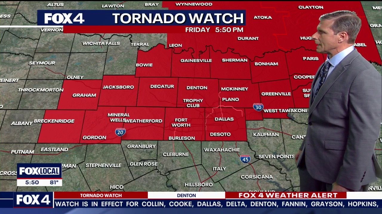 Severe storms are possible Friday afternoon and evening, with the primary window of concern between 3 p.m. and 10 p.m. While the tornado threat remains very low, residents should prepare for hail up to 2 inches in diameter and damaging wind gusts. The highest risk for severe activity Friday sits north of the Metroplex, specifically near Sherman.