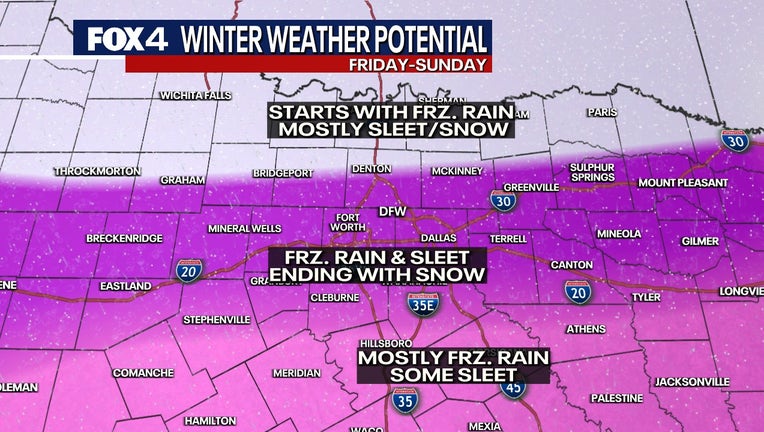 DALLAS - North Texas faces an active weather pattern through the end of the week. Residents should prepare for significant travel impacts as rain, ice, sleet and snow are all possible, with temperatures expected to remain below freezing through the weekend.