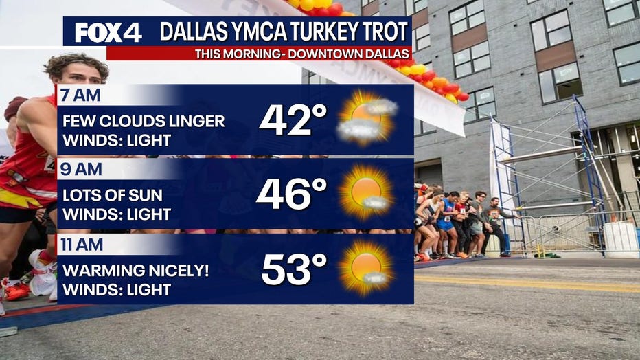 DALLAS - Happy Thanksgiving! It should be a nice day for turkey trotters and families who want to celebrate outdoors in North Texas on Thursday.
